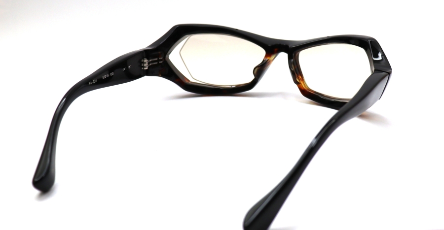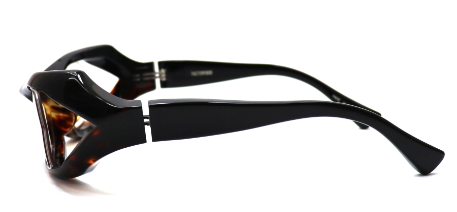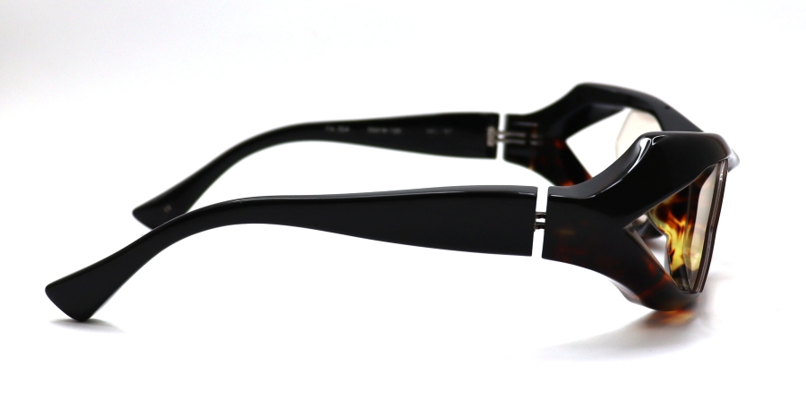 ブローパーツとアンダーパーツとで色を変え、それらを造形面に合わせて組み合わせたモデル。アンダーから力強くテンプルに駆け上がるラインでぴったりと色が分かれたこのつくりは、新たな製造行程と青山眼鏡の技術力があってこその仕上がりです。