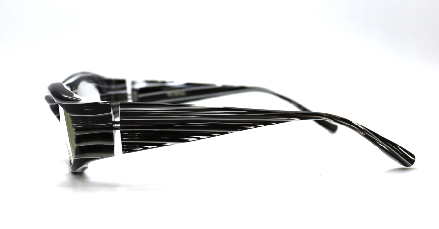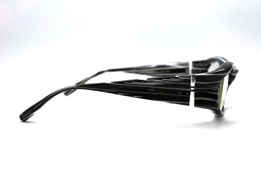 フレームの表の面は、V字テンプルからフロントブリッジの逆R面まで滑らかなカット面でつなぎ、また、フレームの裏の面にもこだわりつくりあげた造形面の美しいモデル。